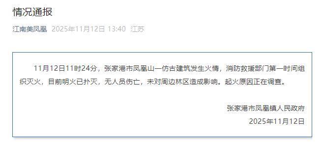 12日,极目新闻记者致电张家港济急处治局,一使命主说念主员默示,12日中午接到警情后,公安、消防等有关部门东说念主员立即赶到现场将火势胁制,当今火灾原因不解。