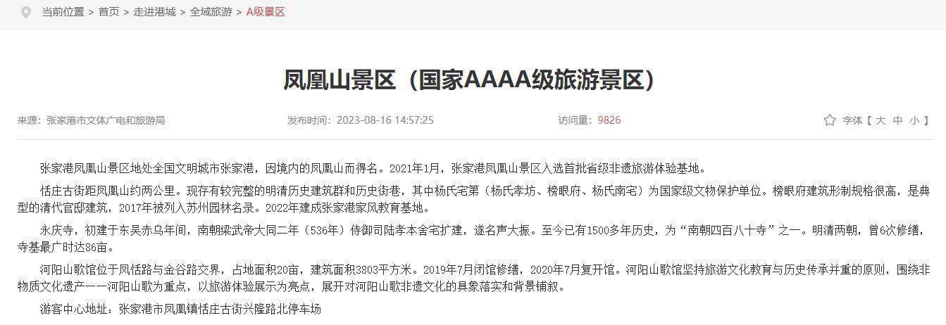 据张家港市东说念主民政府官网先容,凤凰山景区是国度4A级旅游景区,2021年1月,张家港凤凰山景区入选首批省级非遗旅游体验基地。永庆寺位于凤凰山上,初建于东吴赤乌年间,南朝梁武帝大同二年(536年)侍御司陆孝本舍宅扩建,遂名声大振。于今已有1500多年历史,为“南朝四百八十寺”之一。明清两朝,曾6次修缮,寺基最广时达86亩。