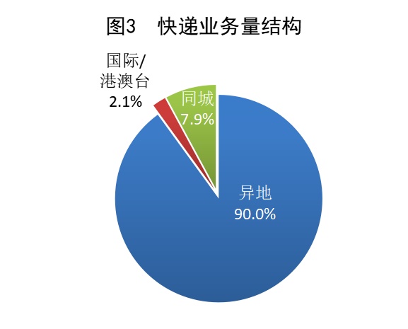 2025年,同城、异域、国外/港澳台快递业务量折柳占一齐快递业务量的7.9%、90.0%和2.1%。与昨年同时比拟,同城快递业务量的比重下落1.0个百分点,异域快递业务量的比重高潮1.1个百分点,国外/港澳台业务量的比重下落0.1个百分点。